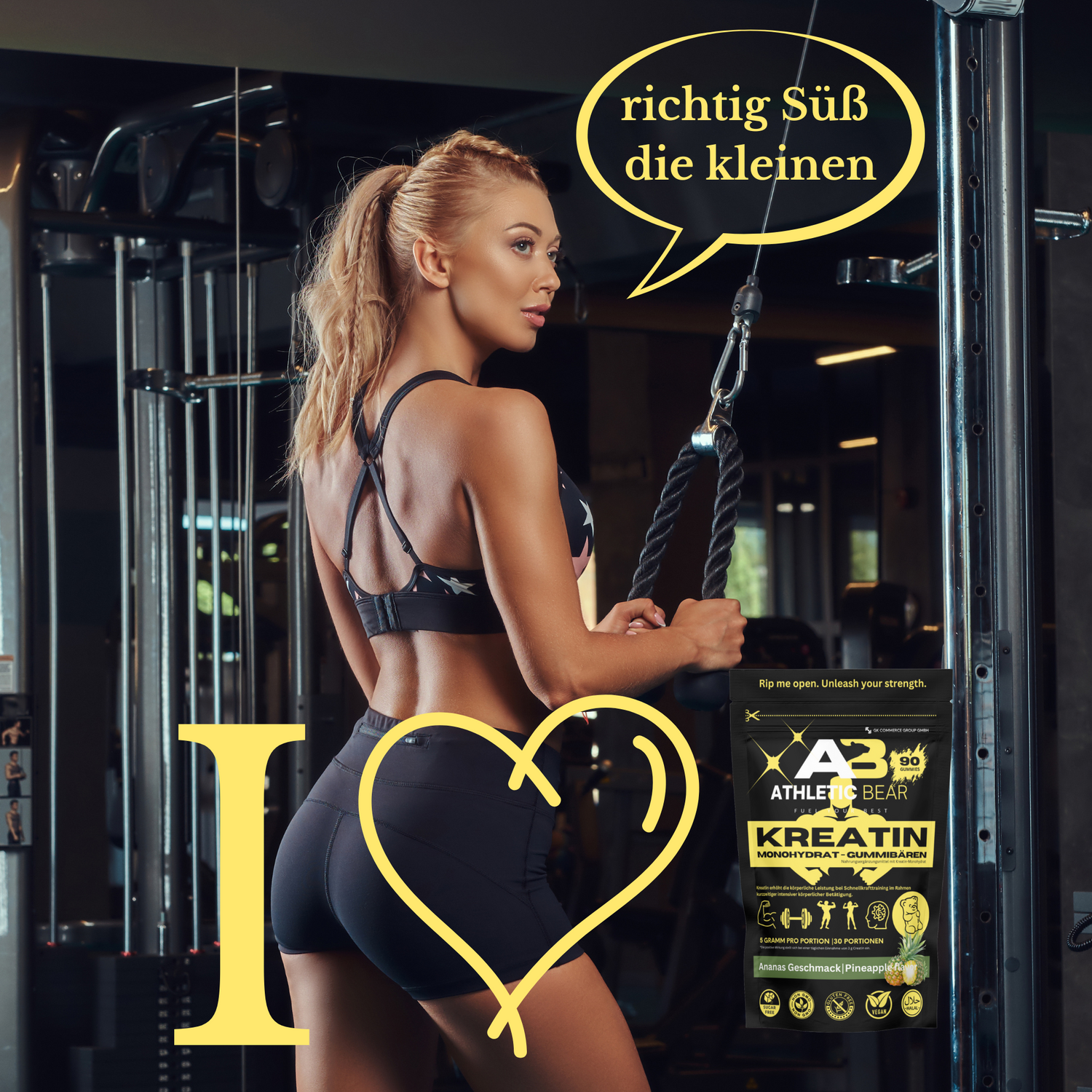 Unsere Kreatin-Gummibärchen sind nicht nur niedlich, sondern auch echte Kraftpakete – besonders für weibliche Athletinnen! Während Kreatin lange Zeit als „Männersupplement“ galt, zeigen aktuelle Studien eindeutig, dass auch Frauen enorm von einer regelmäßigen Kreatin-Einnahme profitieren. Ob du deine Kraft im Training steigern, schneller regenerieren oder einfach dein Energielevel im Alltag pushen willst – unsere Gummibärchen liefern dir genau das in einer alltagstauglichen, leckeren Form.