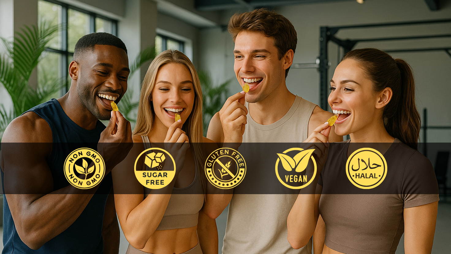 Genieße deine tägliche Dosis Performance mit einem fruchtigen Snack – vegan, zuckerfrei und ideal für unterwegs, ob im Gym, Büro oder auf Reisen.